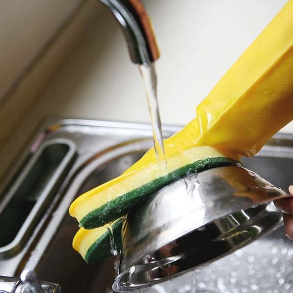 Green Dishwashing Sponge Gloves ,Relieve Weariness Mild Acid Proof Images |