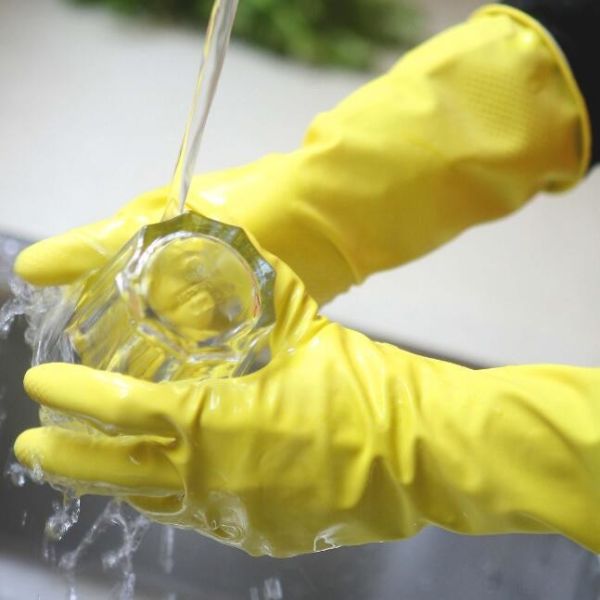 Storage of Rubber Dishwashing Gloves: as a reusable product, just rinse in clean water after each use and air drying; protected from direct sunlight, far from heat sources